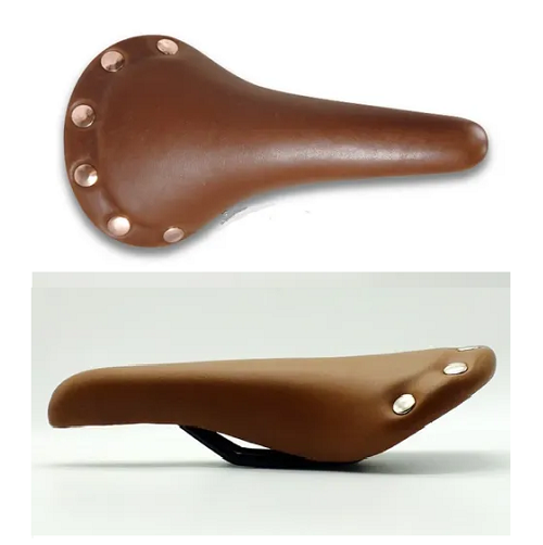 Asiento DDK retro cuero ecológico y tachas, 155x278mm Marrón
