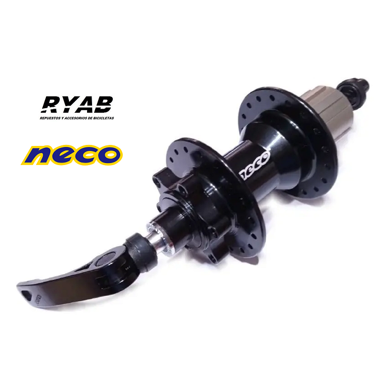 Maza NECO 36 agujeros CON RULEMANES PARA CASSETTE Y FRENO DE DISCO Uso: XC, cercanías, urbano, MTB Incluye varilla de cierre MS08RDQ4 Especificación CARCASA DEL CUBO Aleación MATERIAL DEL EJE Cr-Mo Dia. tras M12mm Longitud STD: 145mm CANTIDAD DE RODAMIENTOS SELLADOS 4 AGUJEROS DE RADIOS: 14Gx36H APTA HASTA 10 VEL. Comprando esta maza estás adquiriendo los mismos estándares de fabricación que otras marcas lanzan que al mercado como productos propios, pero a una fracción de su precio. Construidas en aluminio 6061 son robustas y relativamente livianas, siendo sus mayores virtudes la resistencia que tienen y su relación Precio/Calidad. Montadas sobre rulemanes, permiten largos periodos de rodada con un mantenimiento mínimo y sin necesidad de reajustes. Poseen montaje para discos de 6 tornillos y su eje es con sistema de cierre rápido(QR)