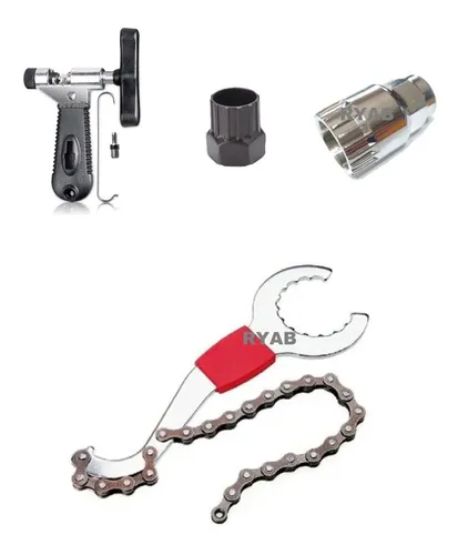 LLave 3 en 1 para caja Hollowtech, con cadena para bloquear el cassette, y pico para quitar contra roscas de cubetas de centro y piñones fijos entre otras